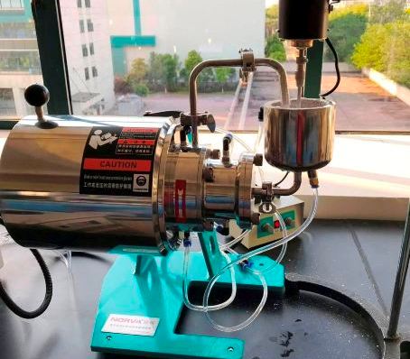 诺研-NORVA(上海)公司在NMZ-Lab03纳米研磨机基础上改进的一款全新全棒销纳米研磨机 采用循环式结构,外置泵,用于液体中固体颗粒的超细研磨和分散,可对流量进行高精度控制和计算,方便后期大生产数度的放大。可循环和批次研磨工艺。粉体产品由外置泵泵如入研磨腔。在棒销的带动下实现研磨、分散。高均匀性,低能耗的特点。清洗简单,可以小批量实验配方,储料罐外置独立,加工批量为5L,软连接。材质可选择德国GX系列合金钢,耐磨95%钇稳定氧化锆等,可将研磨产品至纳米范围内。最小细度经马尔文3000激光粒度仪检测平均粒径D50≤50纳米。特别适用于高粘度浆料的研磨和分散。